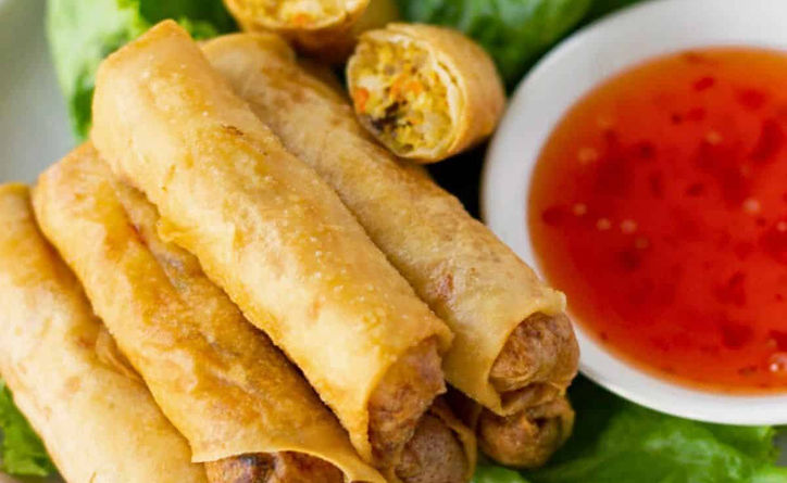 Heat vegetable oil to approximately 350°F before adding spring rolls, frying in batches of 4 - 5 for about 5 minutes or until golden brown. Remove to paper towel lined plate to drain off excess grease.